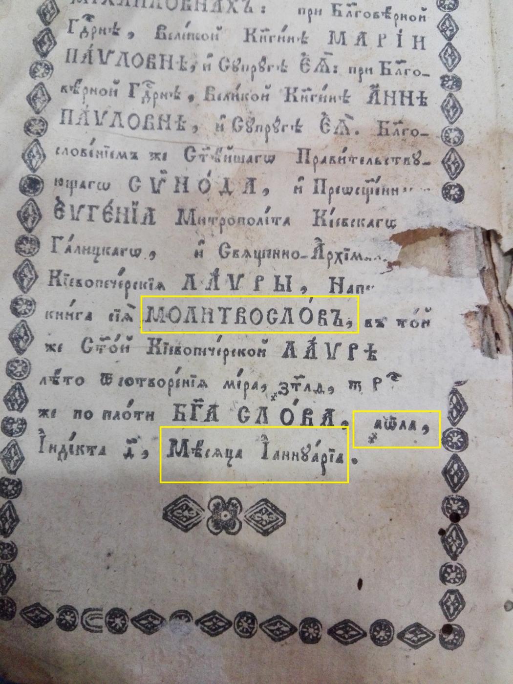 Молитвослов 1831 года. Киево-Печерская Лавра.