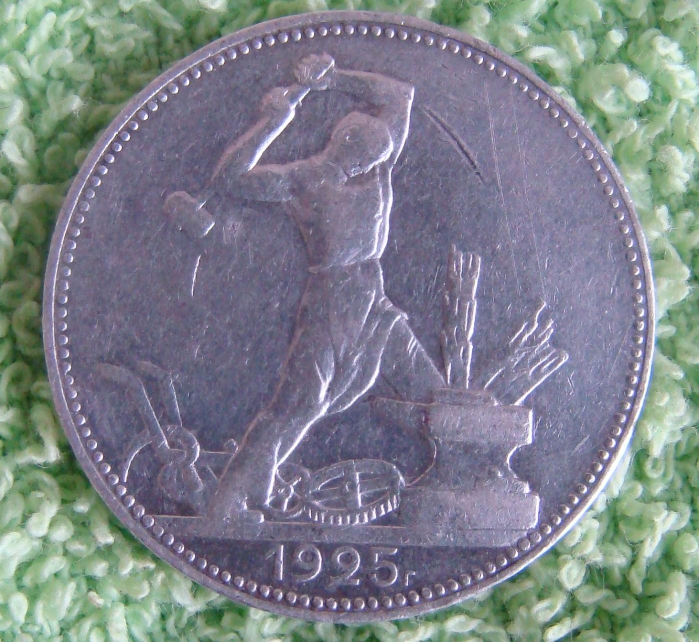 А 1 апреля приезжаю я на Таганку и встречаю там чуть ли не самым первым Дмитрия Ивановича Андреева и говорю ему: "Дмитрий Иванович, а спорим на что угодно, хоть на 3 (ТРИ) рубля, что у меня в кармане сейчас лежит полтинник 1924 с гуртом 1925?" А Д.И. мне отвечает: "Нашёл тоже мне дурака! Первый апрель - никому не верь!" Ну тут я достаю эту монету из кармана и показываю. Д. И. хватается за голову и говорит: "............ (непероводимая игра слов на местном диалекте), да я же эту монету 50 лет искал!" Всё это было вроде где - то в конце 1990 - ых (до 2000 г.) Точнее уже не вспомню.