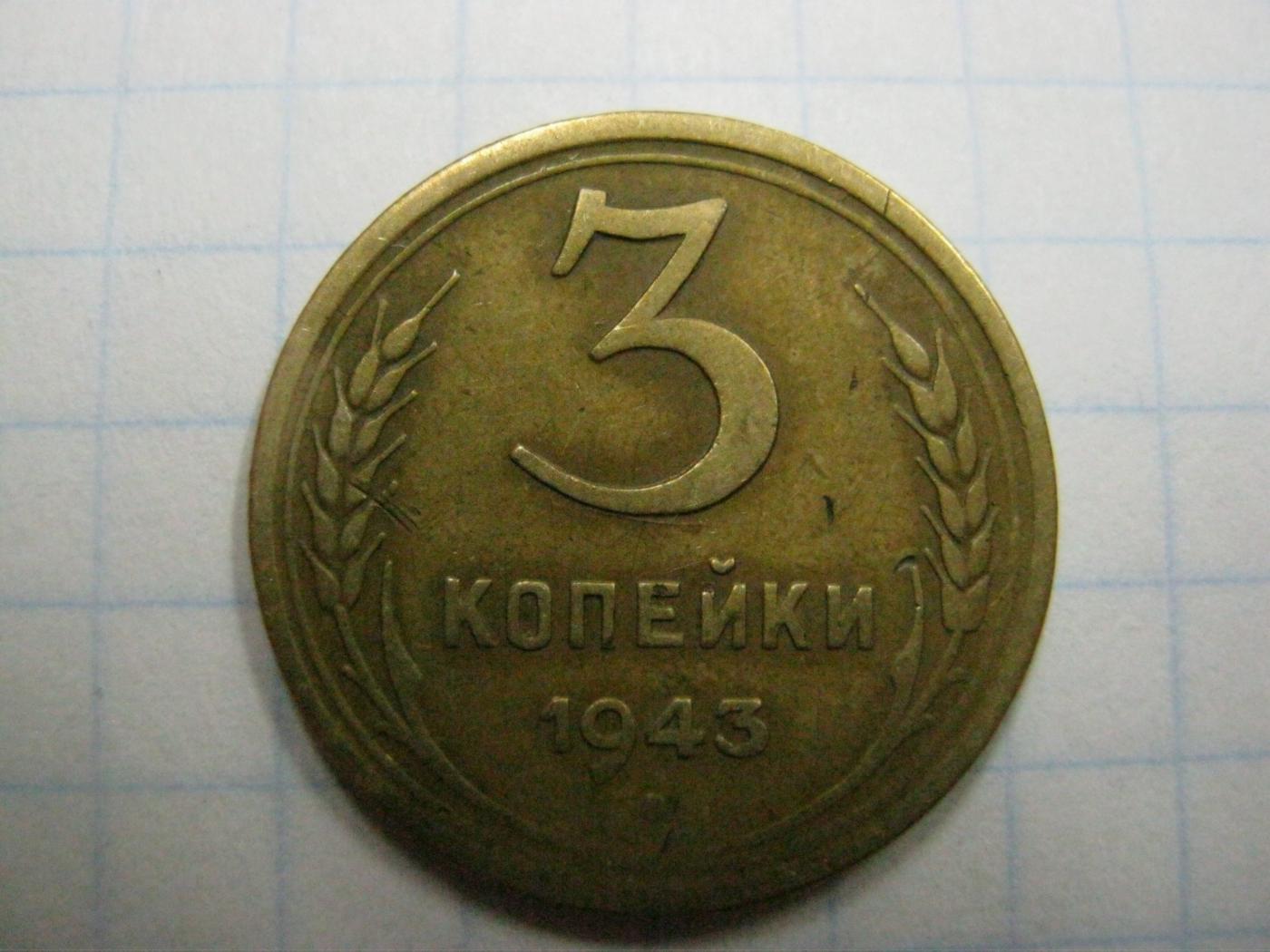 3 копейки 1943. "Перепутка", штемпель 20 копеек (плоская звезда). Оценка