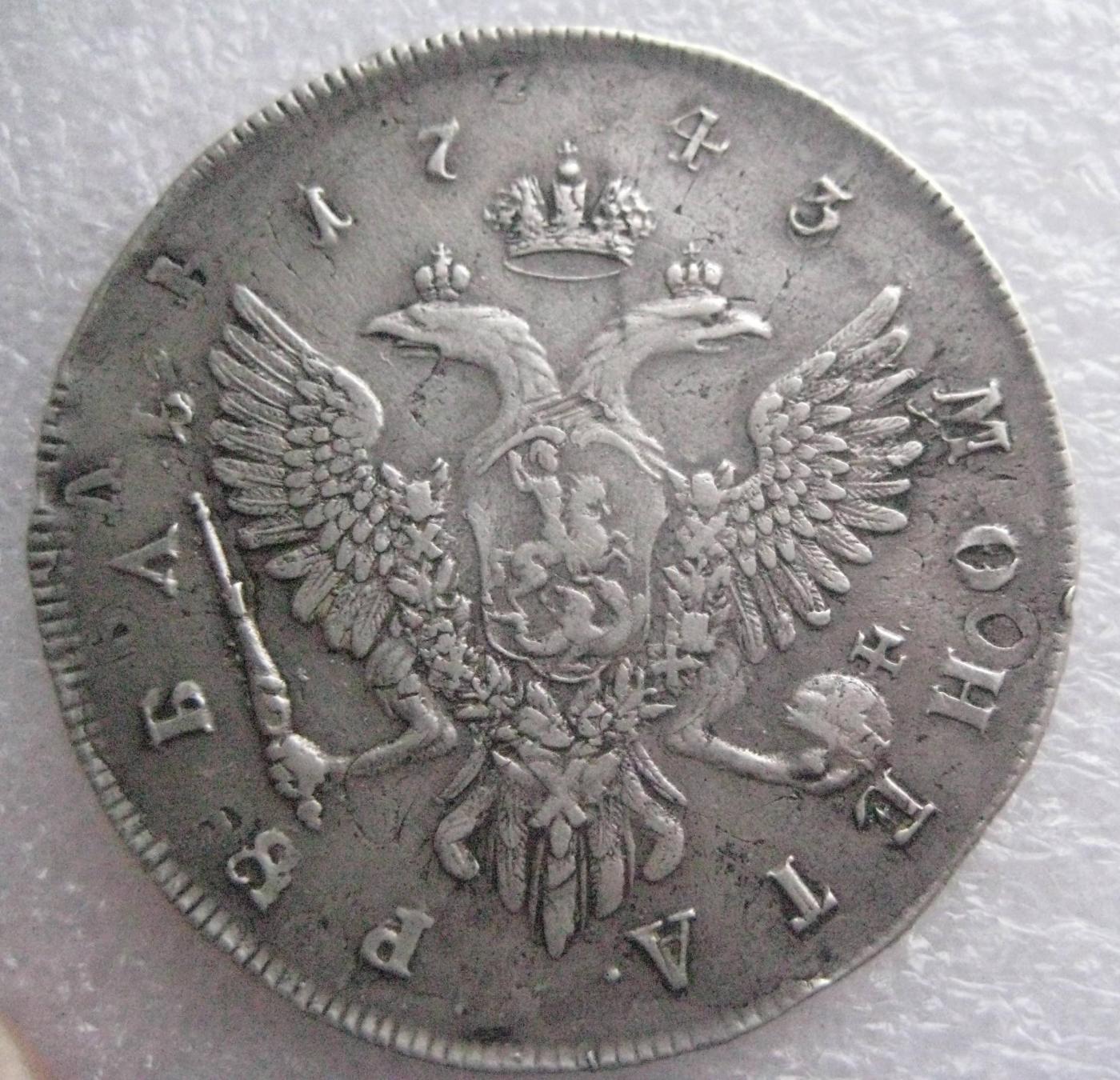 Рубль 1743 перечекан с 1741 года
