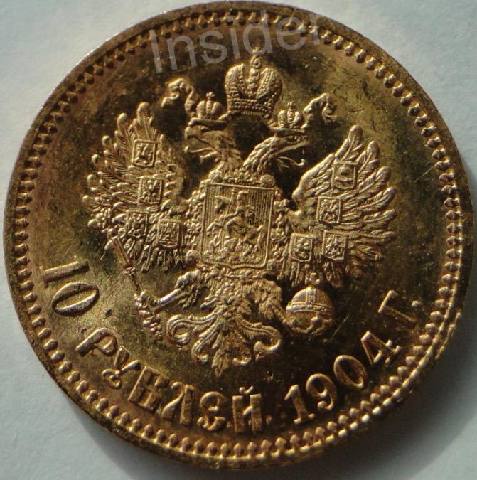 К Вашему вниманию для оценки 10 золотых рублей 1904 года.