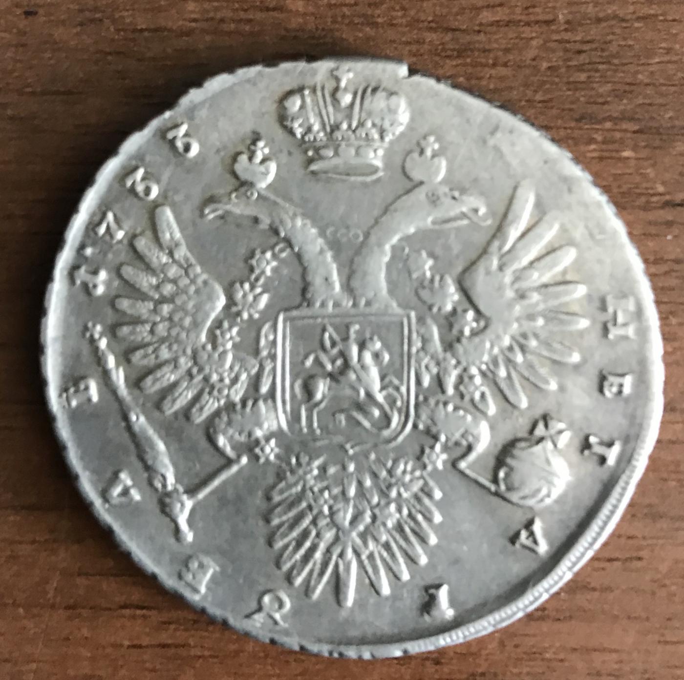 Рубль 1733. Определение подлинности и оценка