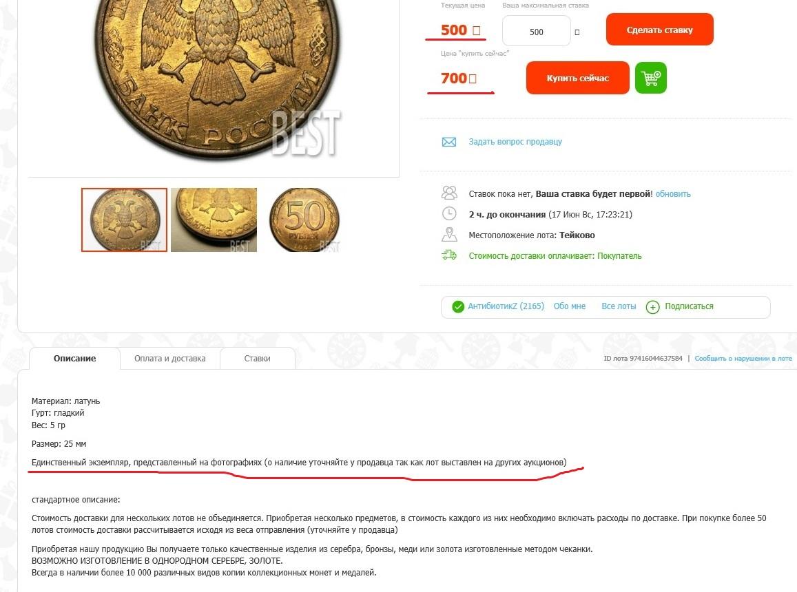 19 июн 2018, 15:47:45 Забыл в ночи написать. Слово "копия" у продавца относится к дублю его лота, а не к монете, это его метка для себя, не несёт никакой смысловой нагрузки, как, например, и номер этого сообщения, страницы темы и проч. 0 Поделиться сообщением Ссылка на сообщение Поделиться на другие сайты