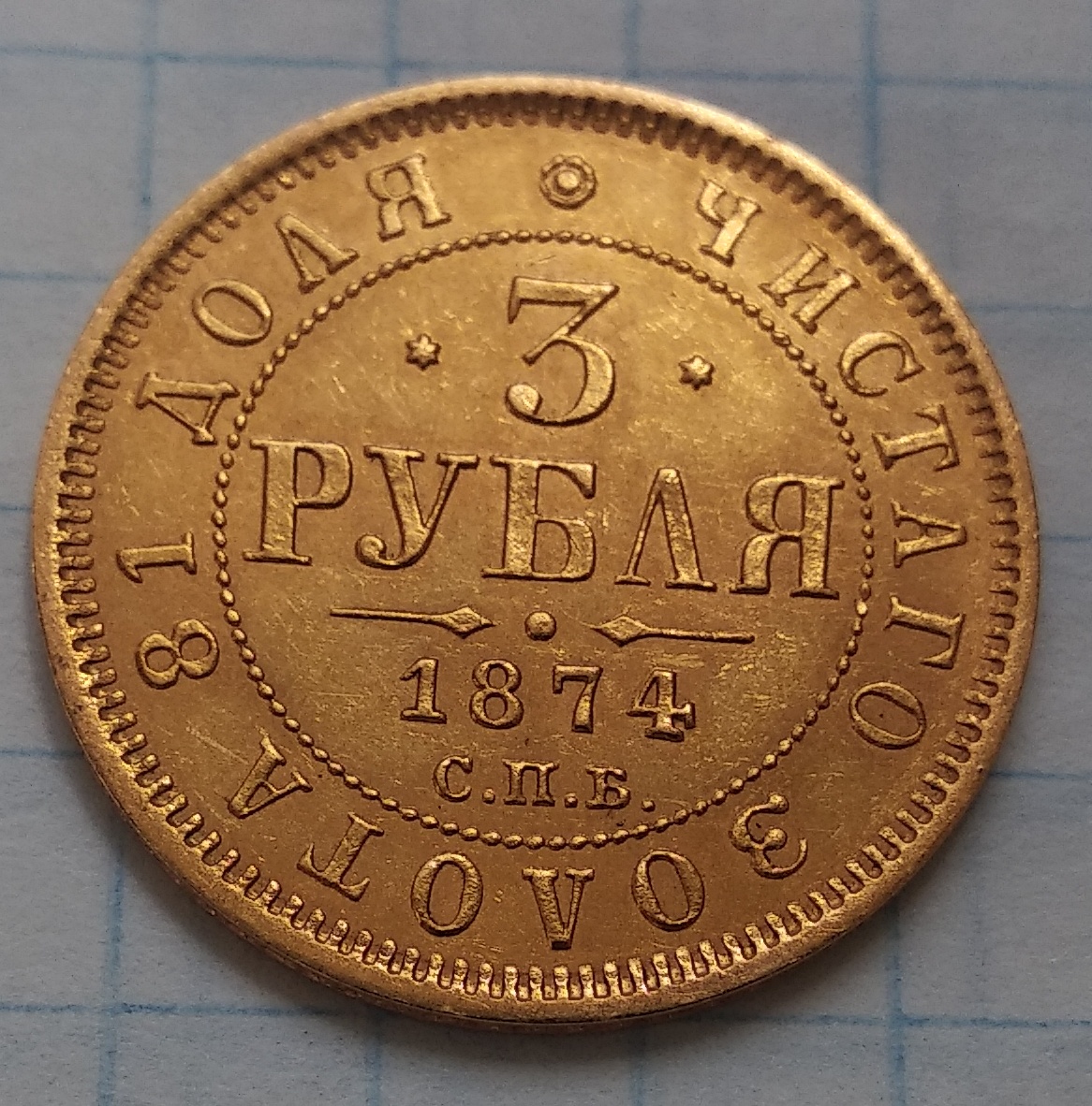 3 рубля 1874 СПБ - НІ. Определение подлинности