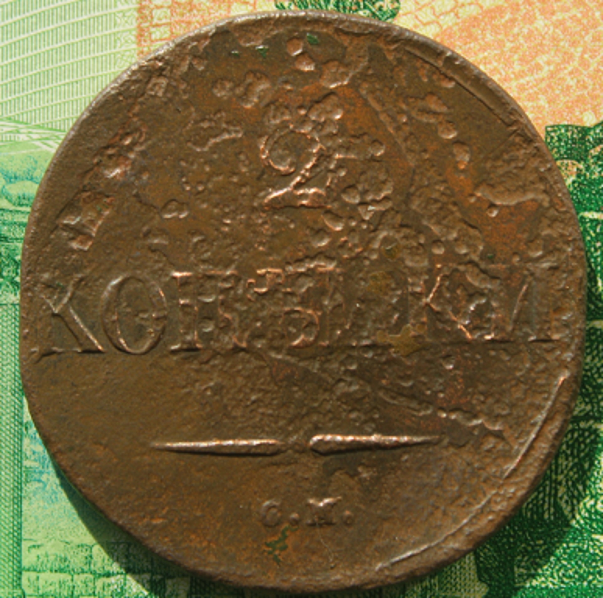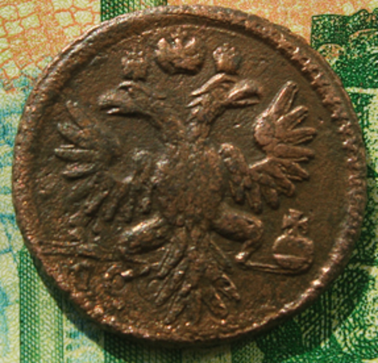 Но монета видится то не рядовая, похоже не перегурченная (гурт от копейки Петра3). Так, что несмотря на состояние я думаю монета будет интересна.