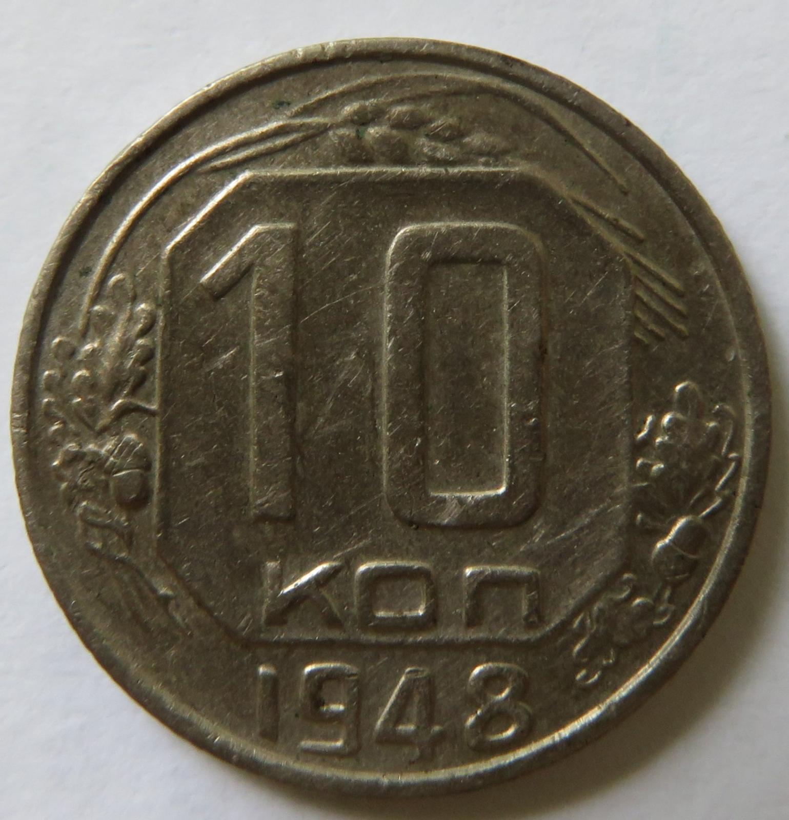 10 копеек 1948. Неописанное у АИФа сочетание аверса с реверсом