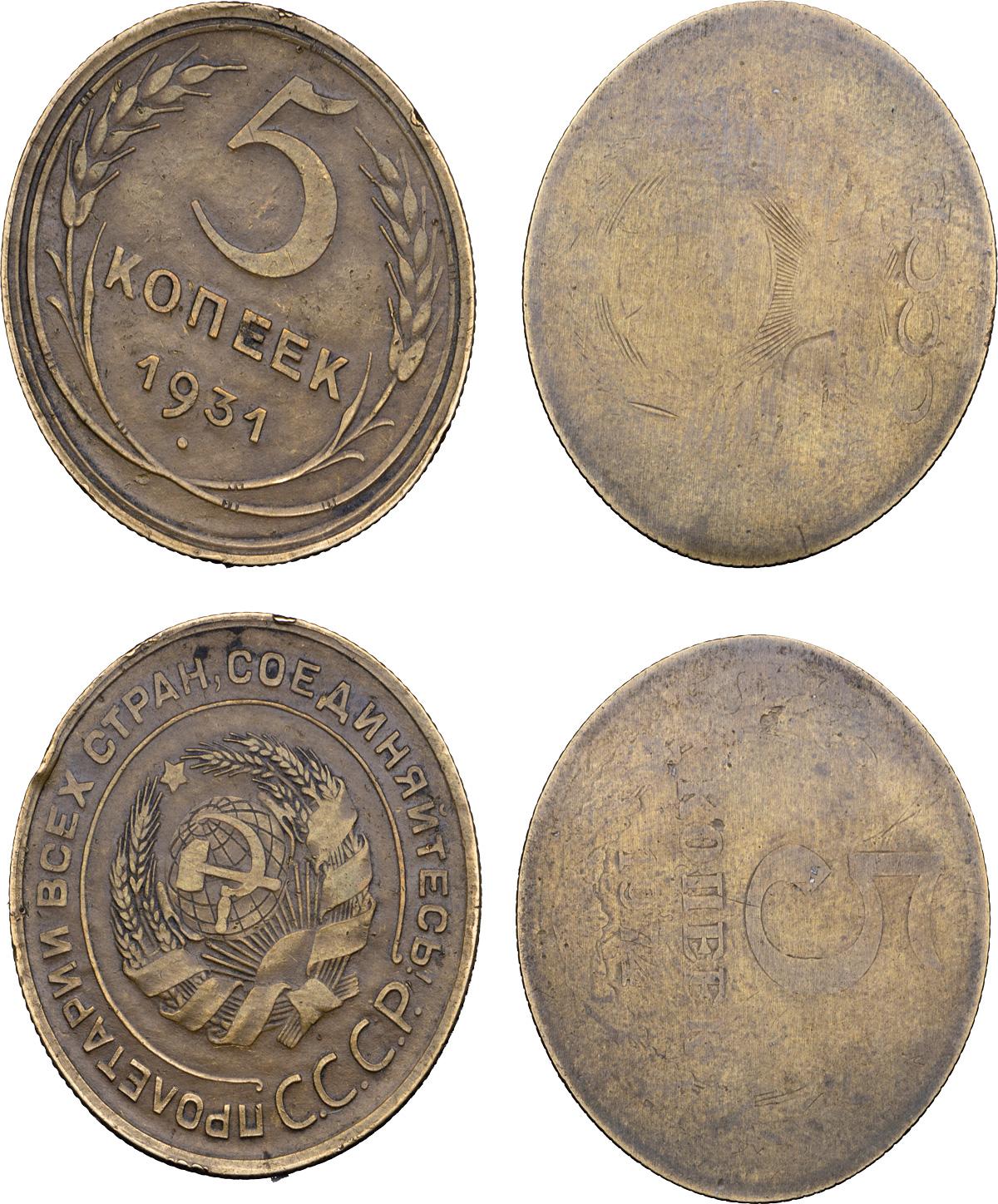 26 ноя 2018, 08:00:28 В 19.11.2018 в 20:07, ФЕДОРИН сказал: Все правильно, или жесткая резина. У меня в коллекции есть овальный (эллипс) пятак 1931 года, у которого сохранились все детали штемпеля, патина и гурт - но тем не менее он овальный. Фото выложу завтра. Думается некий умелец его прокатал и "вытянул" именно между очень жесткими, но проминающимися пластинами. Кого не просил, никто повторить пока такого не смог. Как и обещал выкладываю фото этого интересного предмета. Справа "пятак из под трамвая", а вот левый забавный - понятно, что рукоблуд, но как? 0 Поделиться сообщением Ссылка на сообщение Поделиться на другие сайты