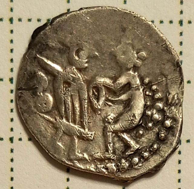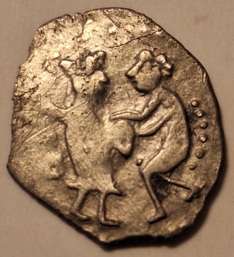 7 дек 2025, 23:18:54 7 часов назад, Innocent_bystander сказал: Из недавно приобретенного. Две точки за фигурой слева, и два ряда точек за фигурой справа. Вес - 0,75г. Там слева не точки, а два кружка... Одна из самых первых пореформенных новгородок (тип I, гр. 1). Датируется, видимо, рубежом 1440-х - 1450-х гг. 4 Поделиться сообщением Ссылка на сообщение Поделиться на другие сайты