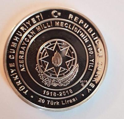 20 сентября 2018 года в Азербайджан на мероприятие 100 Праламента приежал Председатель Парламента Турции. По ходу в честь события было дано поручение изготовить юбилейную монету, но это было внеочереди. Есть информация, что азербайджанские депутаты получили такую монету в подарок. Затем уже реализовали "стандартный" тираж(2000 шт.) турецких юбилеек из серебра. Штук 20 МД всегда оставляет себе.