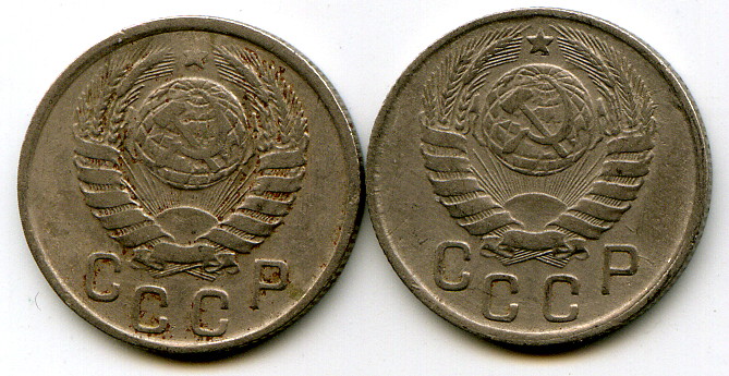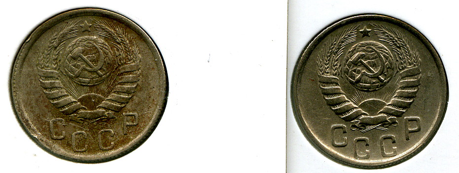 Похоже два пятнарика 1943 "Г", с одним и тем-же дефектом от соударения штемпелей.