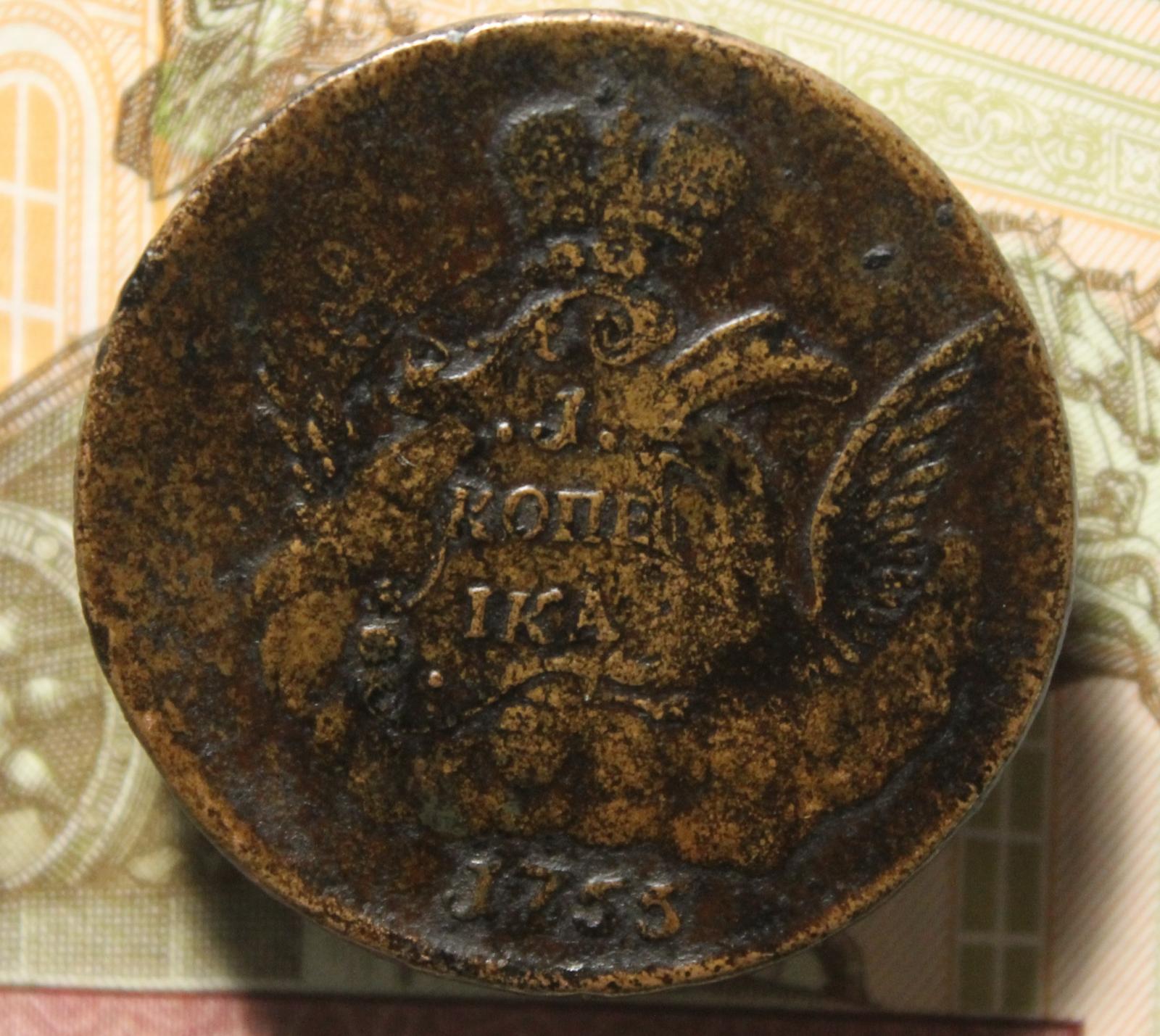 1 копейка 1755 ММД. Определение подлинности и атрибуция