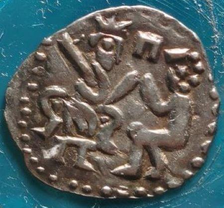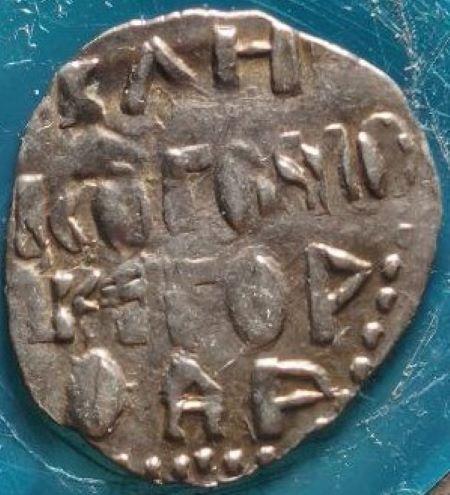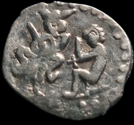 Новгород. Денга с сидящей левой фигурой