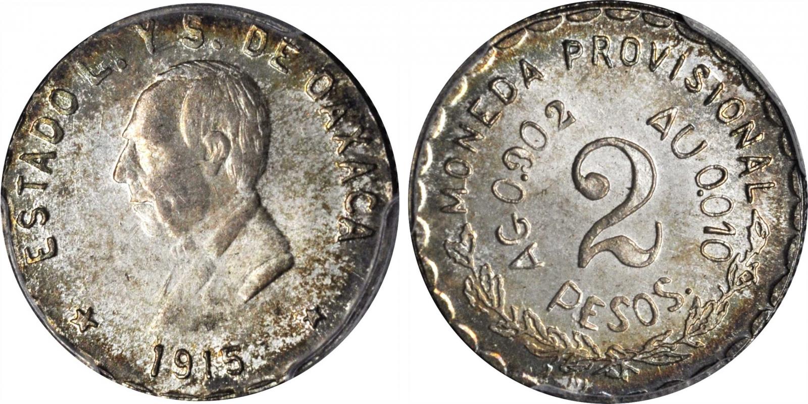 Мексика, Oaxaка, 2 песо 1915 революция.