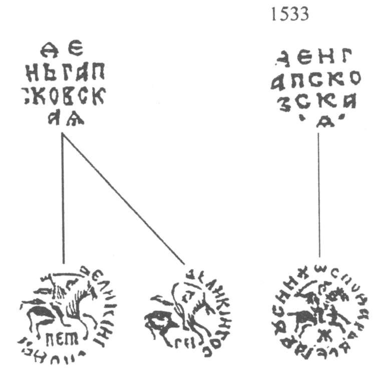 Псковская денга Василия III с буквами ПЕТ ?