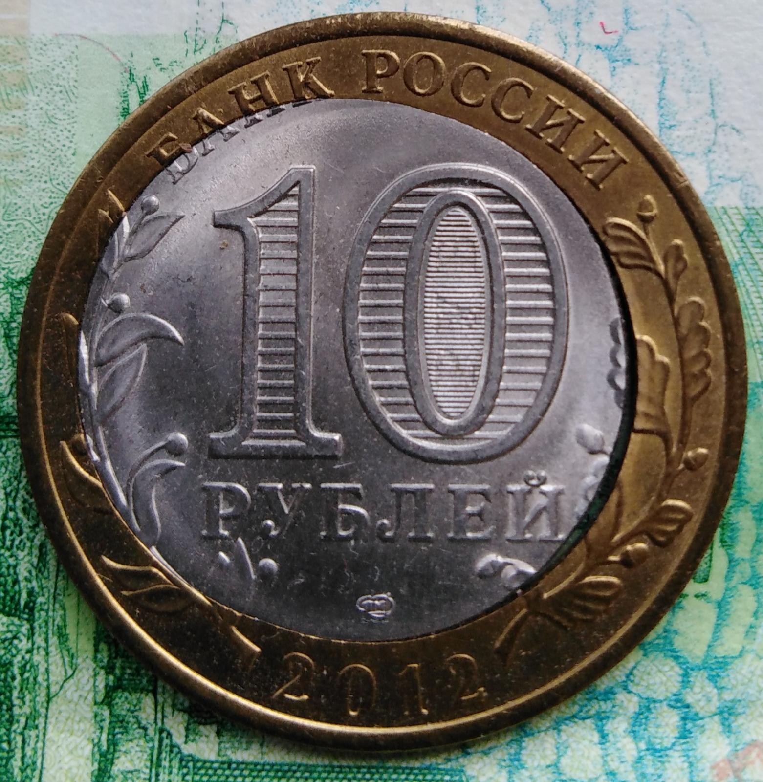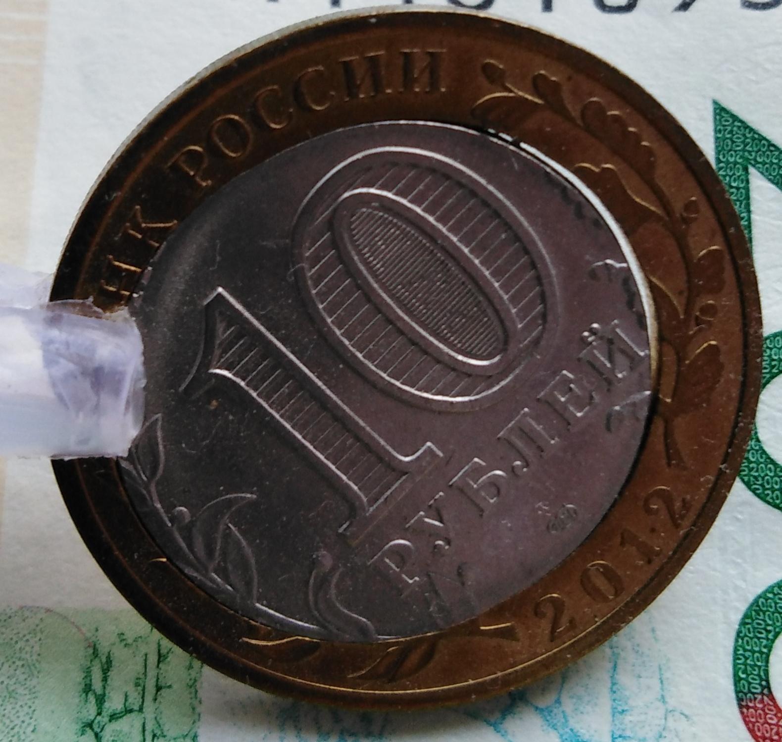 10 рублей 2012 СПМД "Белозерск". Брак (двойная вырубка). Оценка