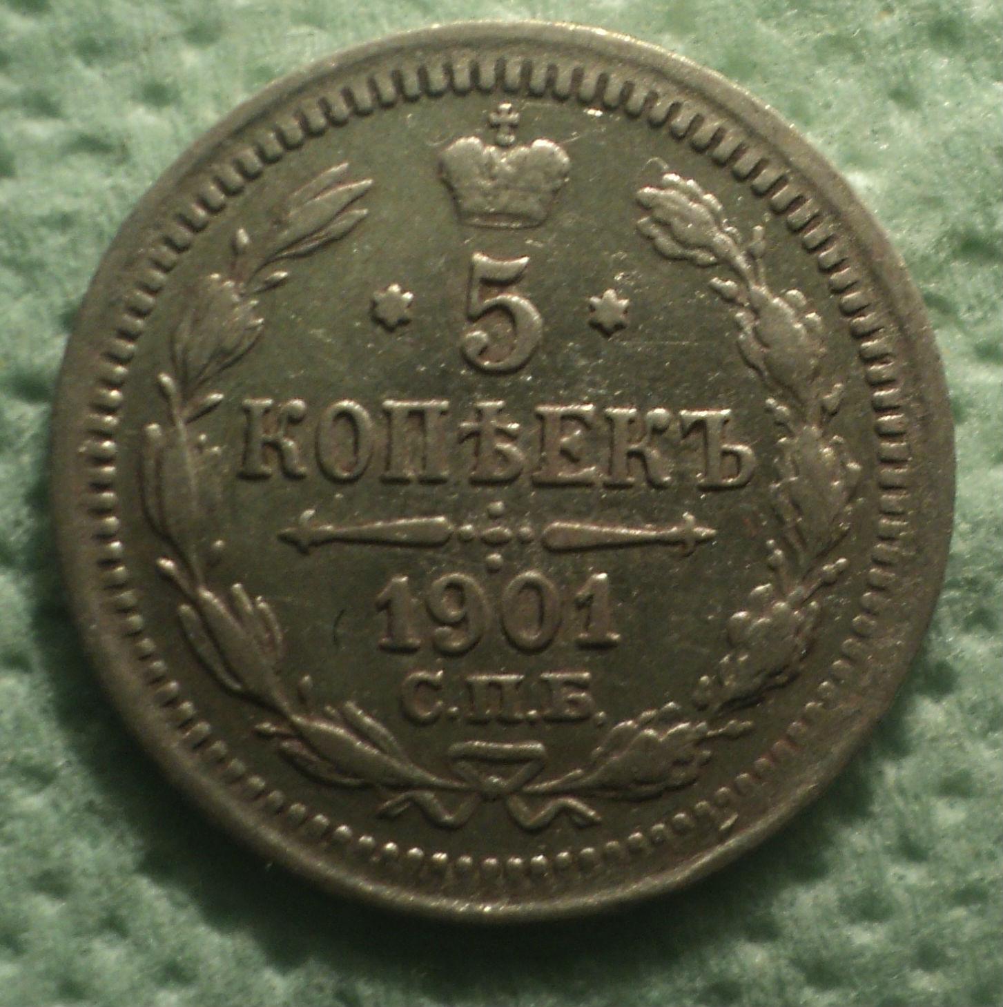 5 копеек 1901 СПБ - ФЗ, 1905 СПБ - АР. Рубль 1899 ФЗ. Оценка