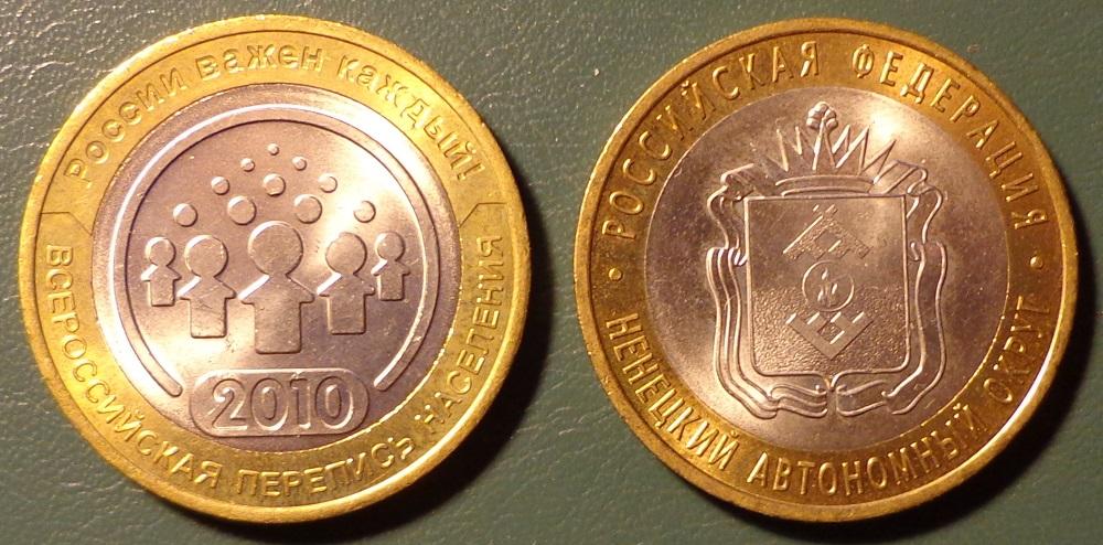 Набор современных биметаллических 10 - рублёвых монет. Оценка