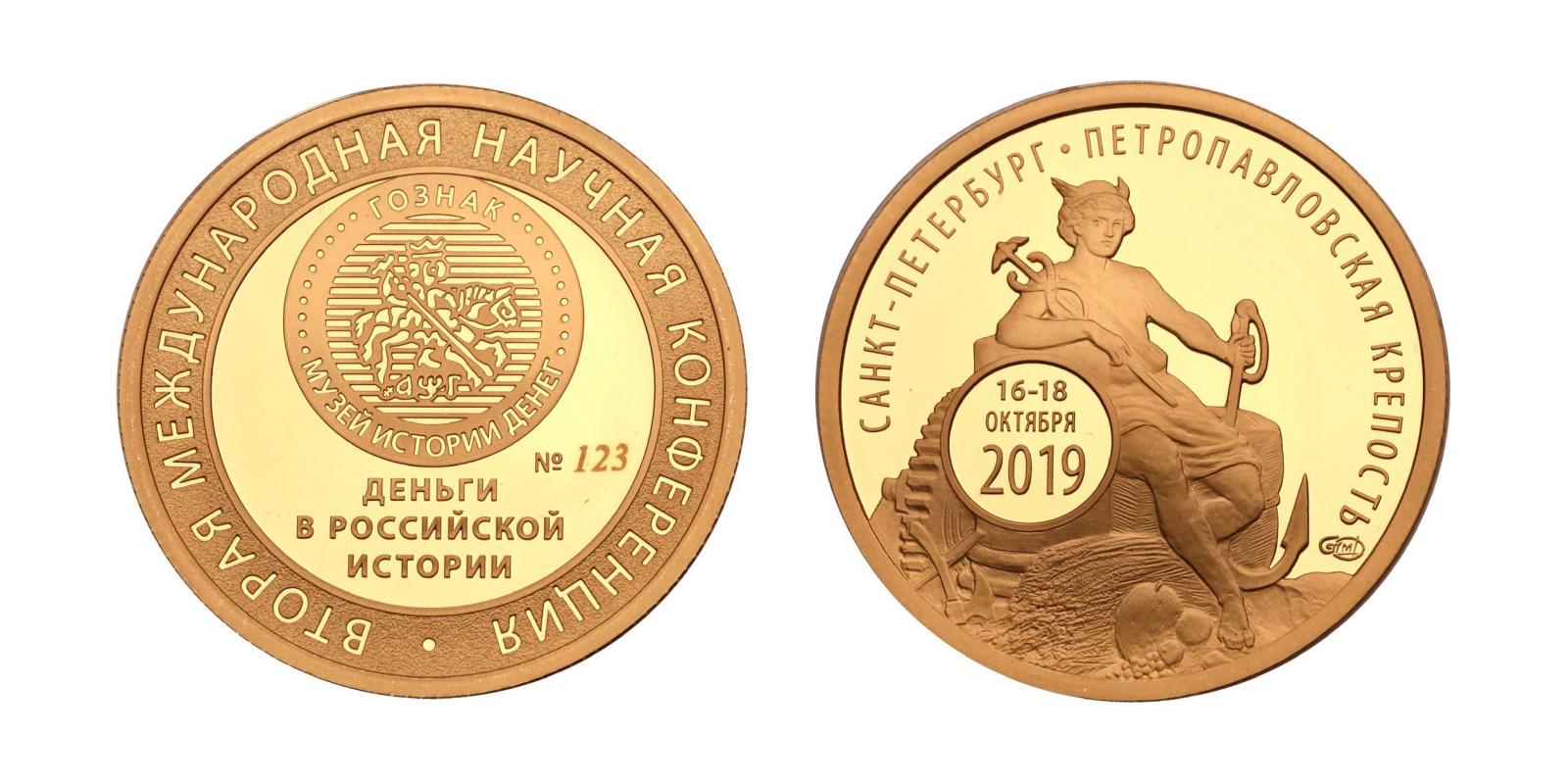 19 окт 2019, 17:49:42 Конференция благополучно прошла, надеюсь, что все ее участники были довольны. Сборник поступил в музейную лавку. Ниже - жетон конференции, выпущенный Санкт-Петербургским монетным двором в двух вариантах. "Серебряный" жетон предназначался докладчикам, "золотой" - организаторам и ведущим секций. Кроме того, часть жетонов поступила в музейные собрания. За основу для жетона был взят эскиз 10-рублевой банкноты, выполненный художником Адольфом Шарлеманем в 1890 году. 6 Поделиться сообщением Ссылка на сообщение Поделиться на другие сайты