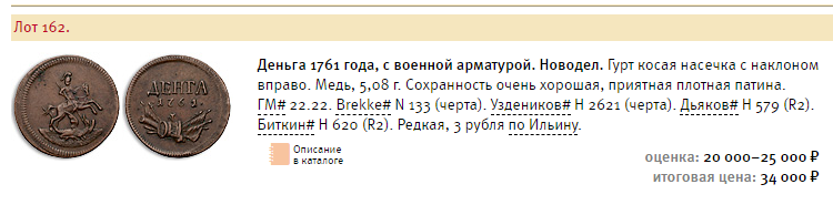 Да не я пишу, а пишет В.В. Уздеников и В.П. Рзаев. Уважаемые люди. Кто здесь пишет, я не знаю, может тоже уважаемые. Какой-то козёл даже минус мне влепил. Литературу надо читать и изучать вопрос. 1760 - пробные, 1762 г - монеты массового выпуска. В 1761 г ни пробников, ни монет массового выпуска не было.