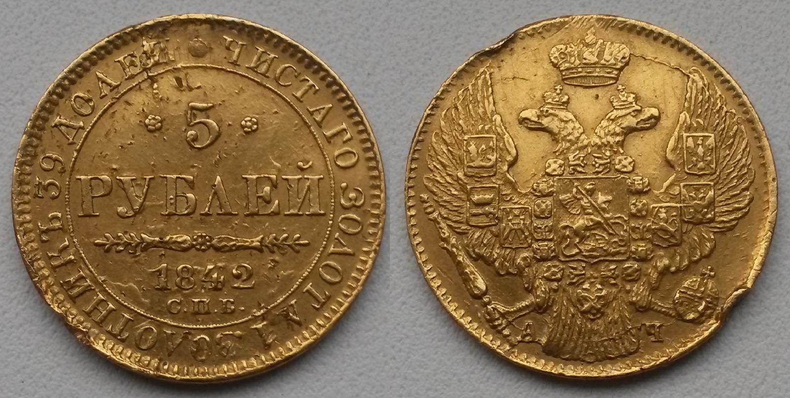 5 рублей 1842 СПБ - АЧ. Определение подлинности