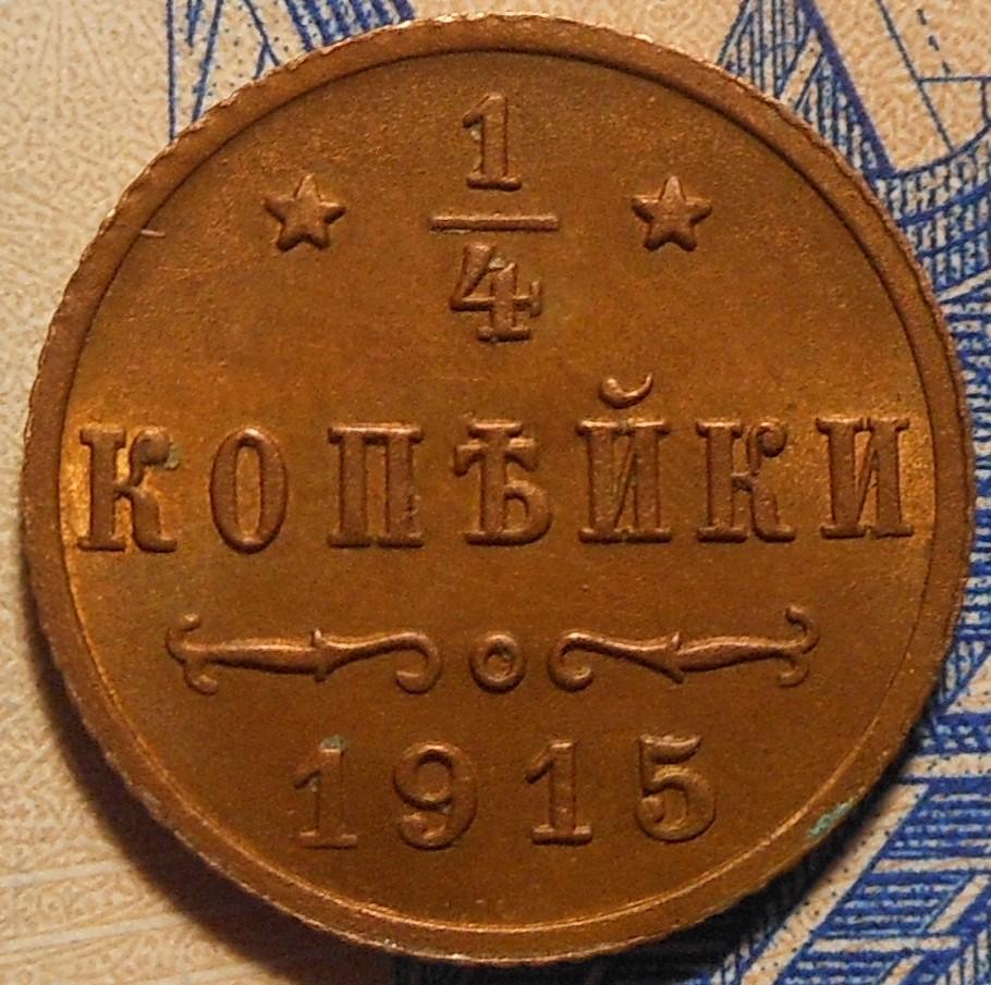 1/4 копейки 1915 года СПБ в штемпельном блеске, оценка