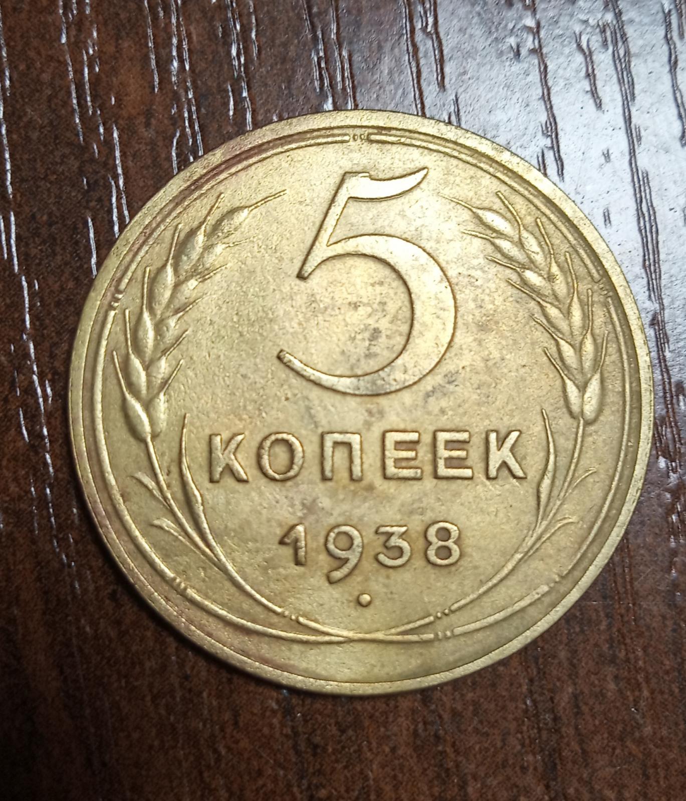 Здравствуйте. Оцените пожалуйста 5 копеек 1938 года.