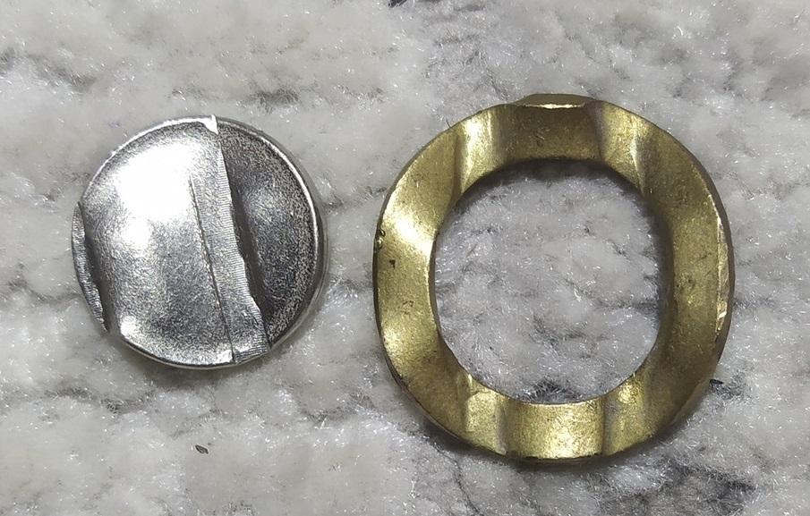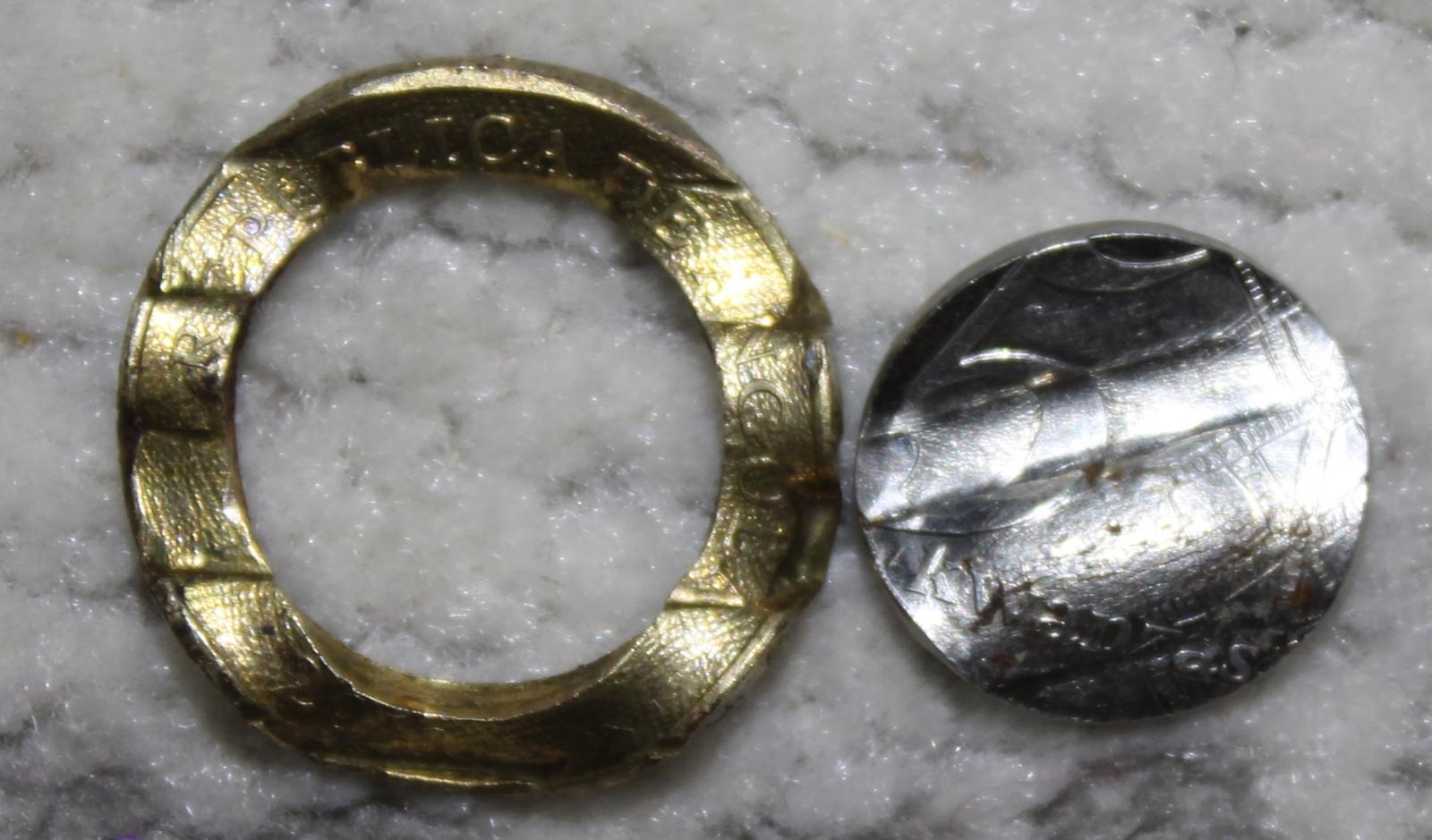 11 июн 2020, 18:57:16 Добрый вечер! представлю еще одну монету 5 кванз 2012г . так же гашеная, Сердцевина так же не подходит по гашению,т.к. при гашении все сердцевинки вылетали и найти нужную это наверно невозможно. Самое интересное Что к браку гурта "Десять рублей" добавился еще " нахлест букв" на гурту ,т.к. монета меньше диаметром чем наш БИМ. подскажите из-за добавленного брака будет она ценнее? и будет ли интерес на аукционе? Заранее благодарен! 3 Поделиться сообщением Ссылка на сообщение Поделиться на другие сайты