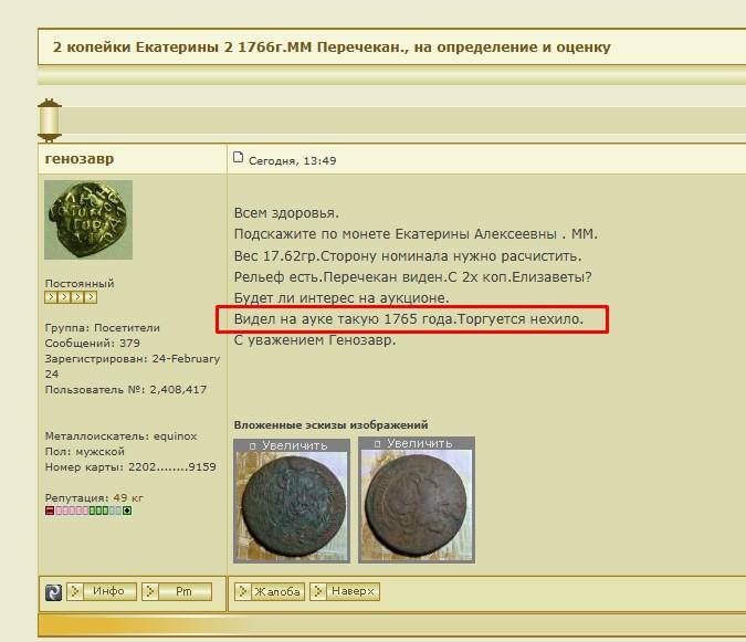 2 копейки 1765 ММ. Оценка