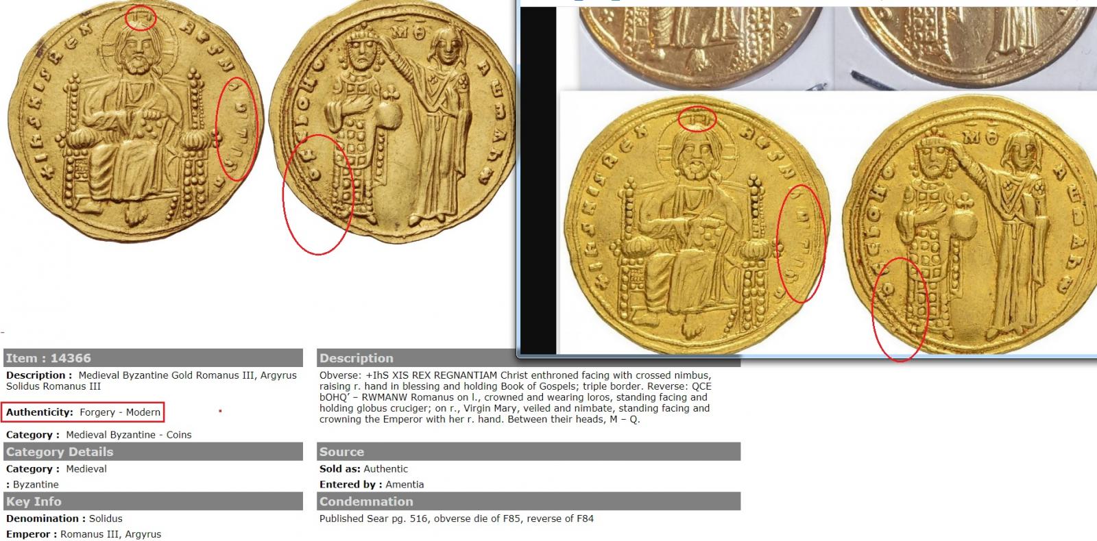 Византия, Роман III Аргир, гистаменон номисма. Определение подлинности