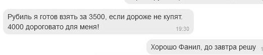 4 сен 2020, 12:53:45 2 минуты назад, Poiskovic сказал: Предлагали за него 3500 мне. Наверное так и расстанусь. Спасибо Сергей за ответ. А попробовать на биржу здесь выставить не хочешь ? 0 Поделиться сообщением Ссылка на сообщение Поделиться на другие сайты