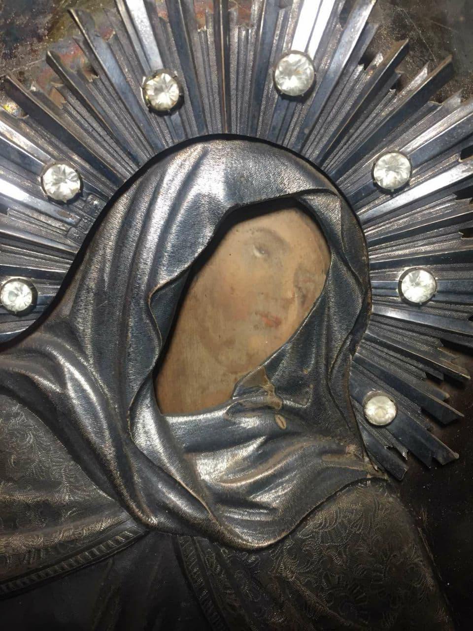 потому что гладиолус. не, Матка Бозка изображается одна, без Младенца. но редко и явно не в этой позе. продолжаю считать что это Мария Магдадалина. икона НЕ православная а скорее униатская или католическая. в принципе снятие оклада должно помочь
