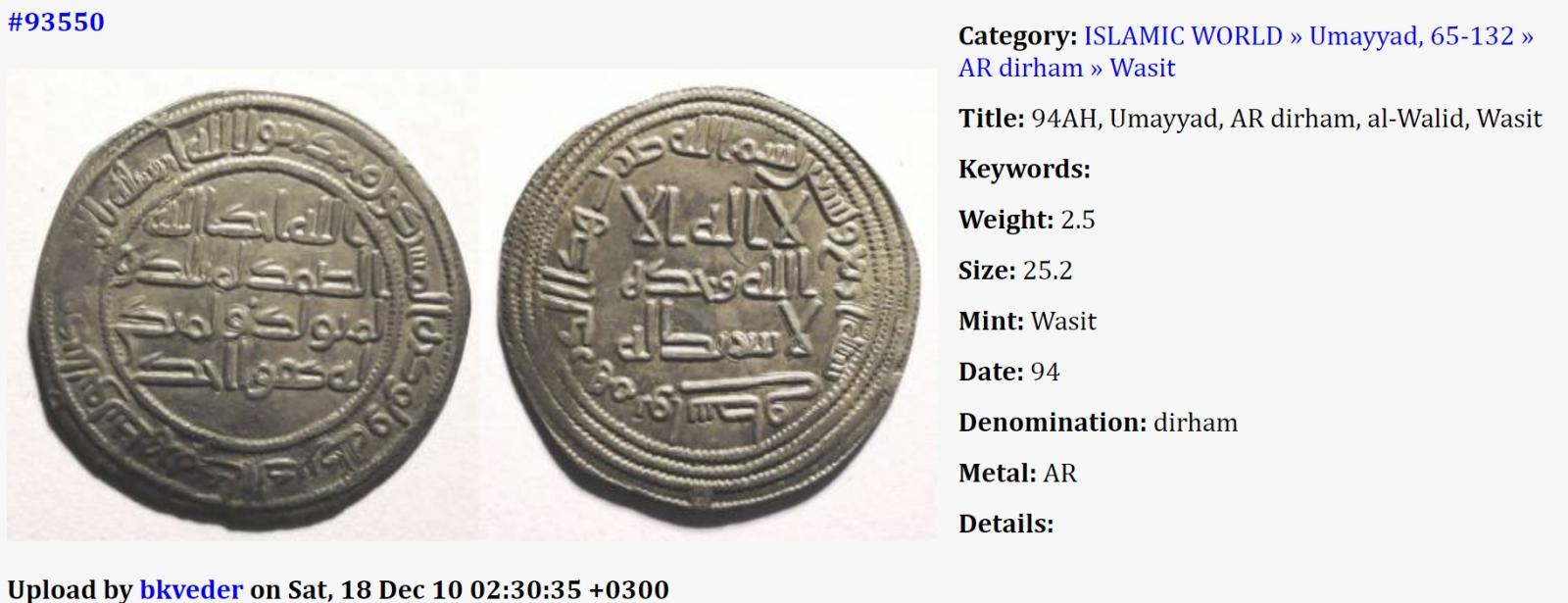 Омейяды, Аббасиды, дирхем. Атрибуция