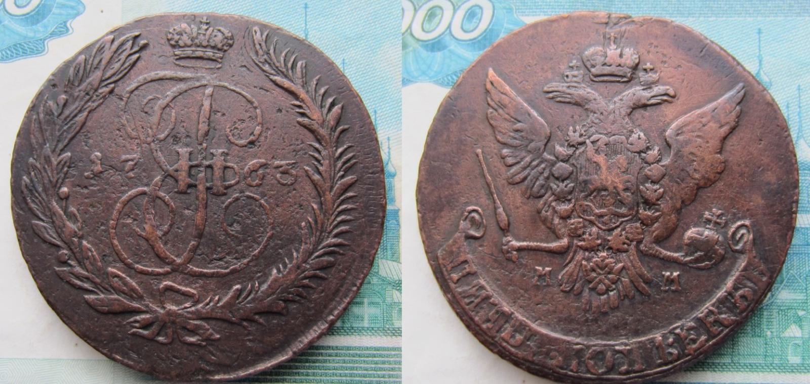 5 копеек 1763 ММ. Прямой перечекан из 5 копеек Елизаветы Петровны? Атрибуция