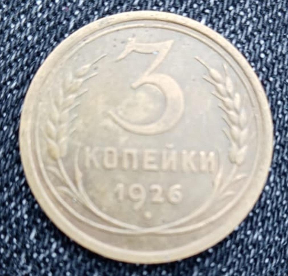 3 копейки 1926, "перепутка", штемпель 20 копеек, буквы "СССР" - вытянутые. Оценка