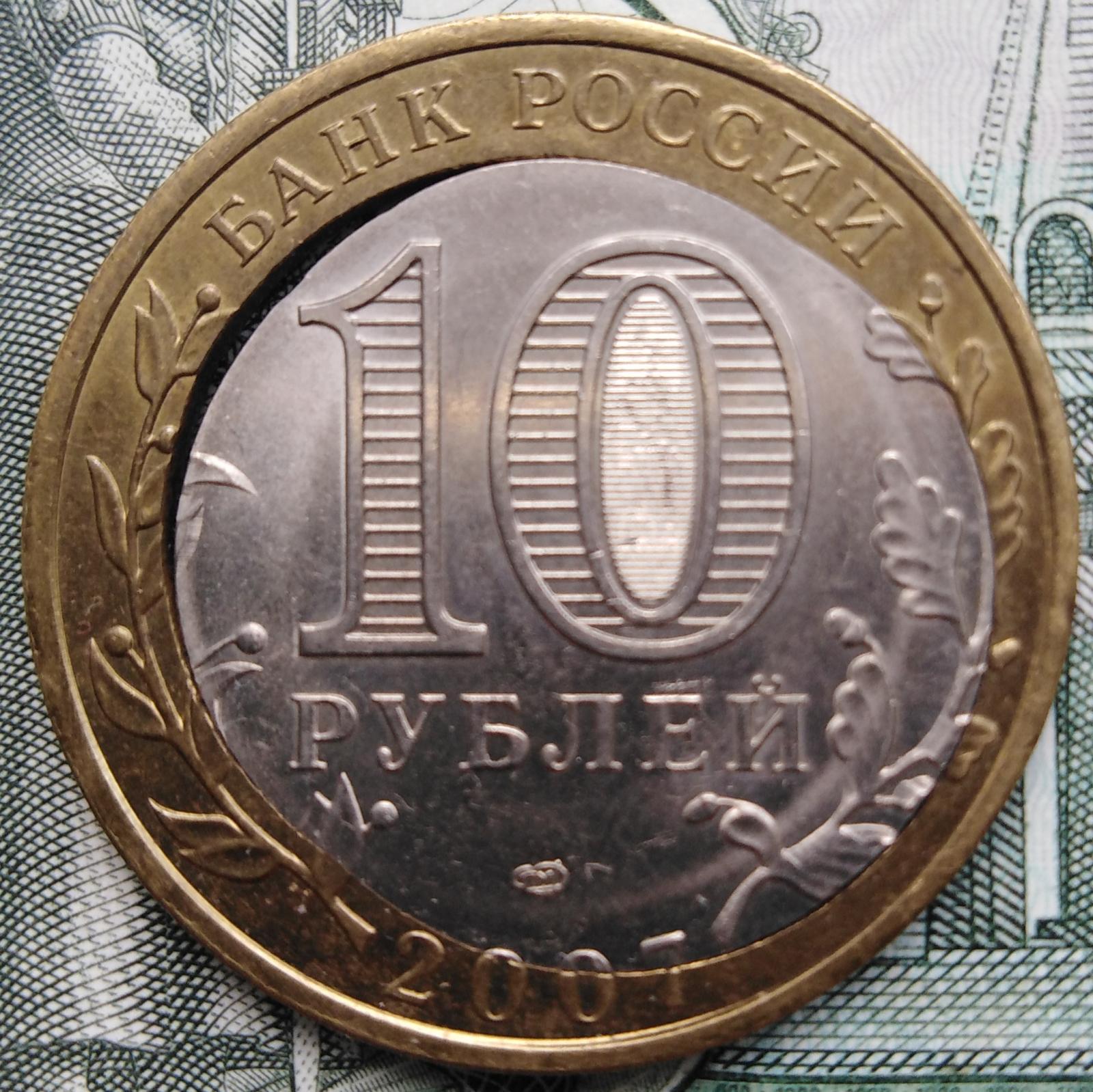 10 рублей 2007 СПМД "Архангельская область". Брак (двойная вырубка). До 05.06.21 в 22.00 МСК