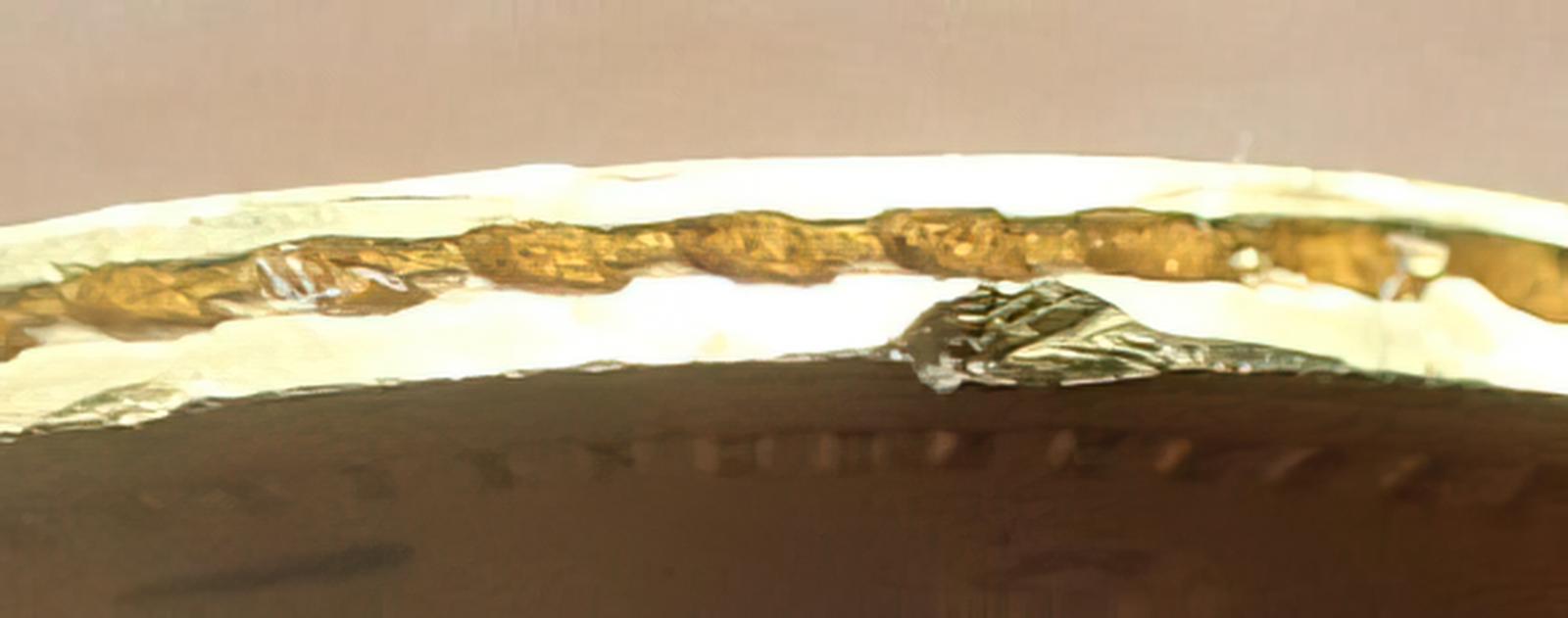 Если продавец такой хитрый и коварный, что мешало ему отнести монету к ювелиру, где ее залудили бы так, что и вопросов не возникало бы.