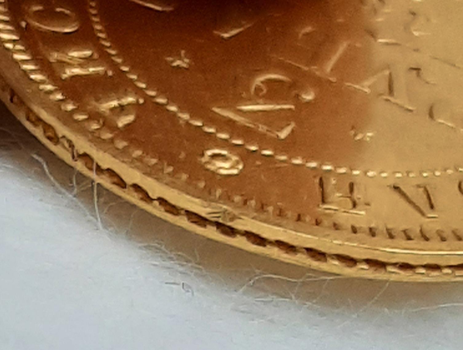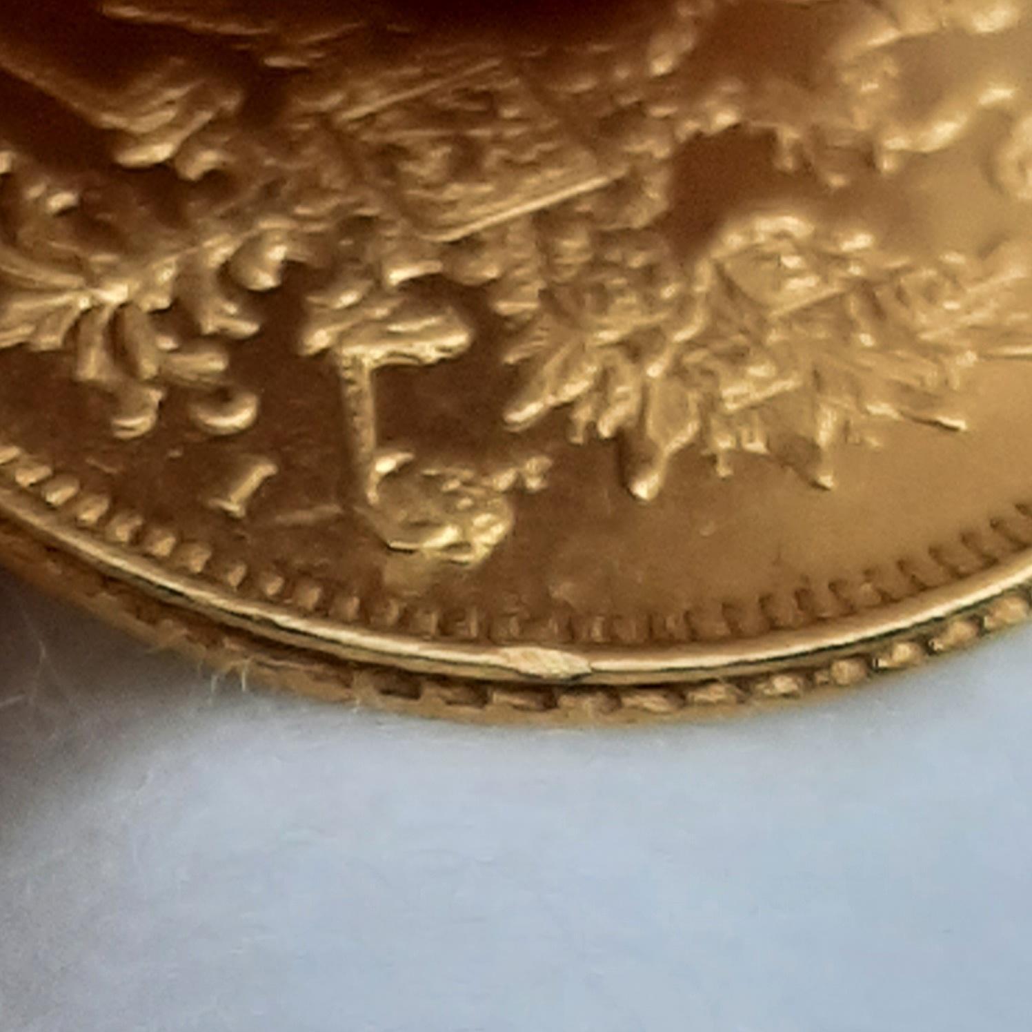 Конечно удар ,даже кромка гурта видна ,кромка сдвинулась ,есть смутное предположение ,что зажимали в тиски ,только зачем ХЗ