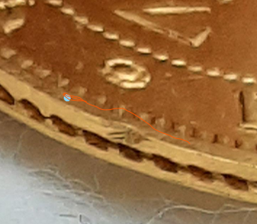а такая же монетина своим гуртом не могла такого сделать? проба высокая, металл мягкий