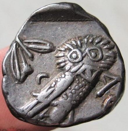 По стилистическим особенностям изображения совы, по её пропорциям, в частности - по непропорционально большой голове, видно, что это уже поздняя чеканка, продолжавшаяся по мотивам очень популярной монеты.