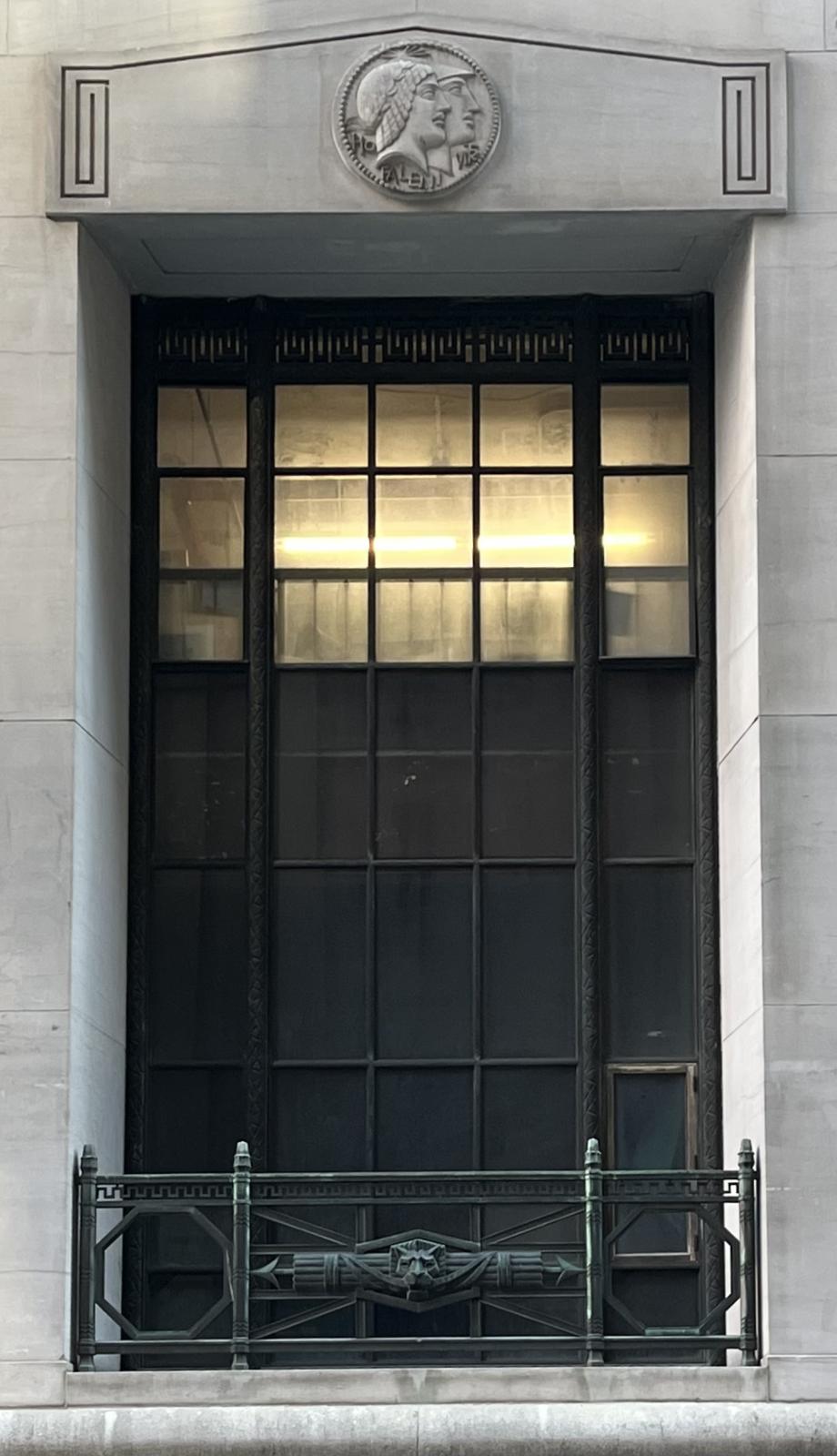 Рядом с показанным в предыдущем сообщении домом по адресу: 1 Hanover St. находится еще одно здание с монетами на фасаде. Его адрес: 20 Exchange Pl.