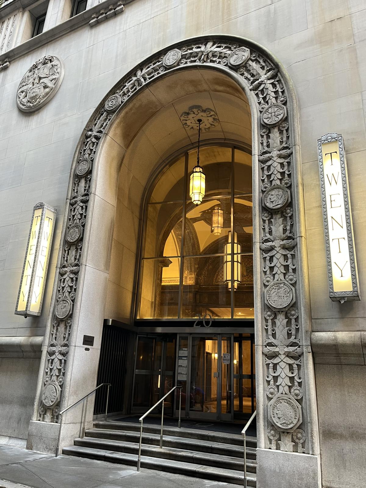 Статья в Википедии про этот дом: https://en.wikipedia.org/wiki/20_Exchange_Place