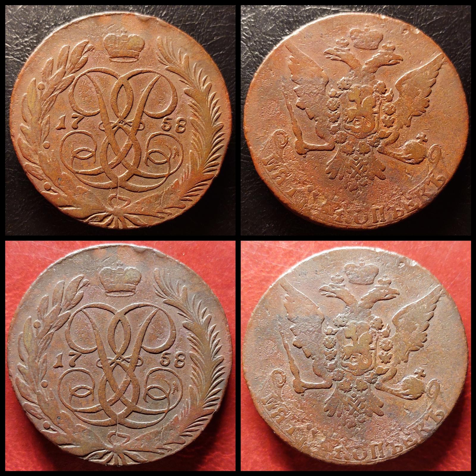 5 копеек погодовка 1758 -1762 (ММ, Сесторецк, без букв) оценка