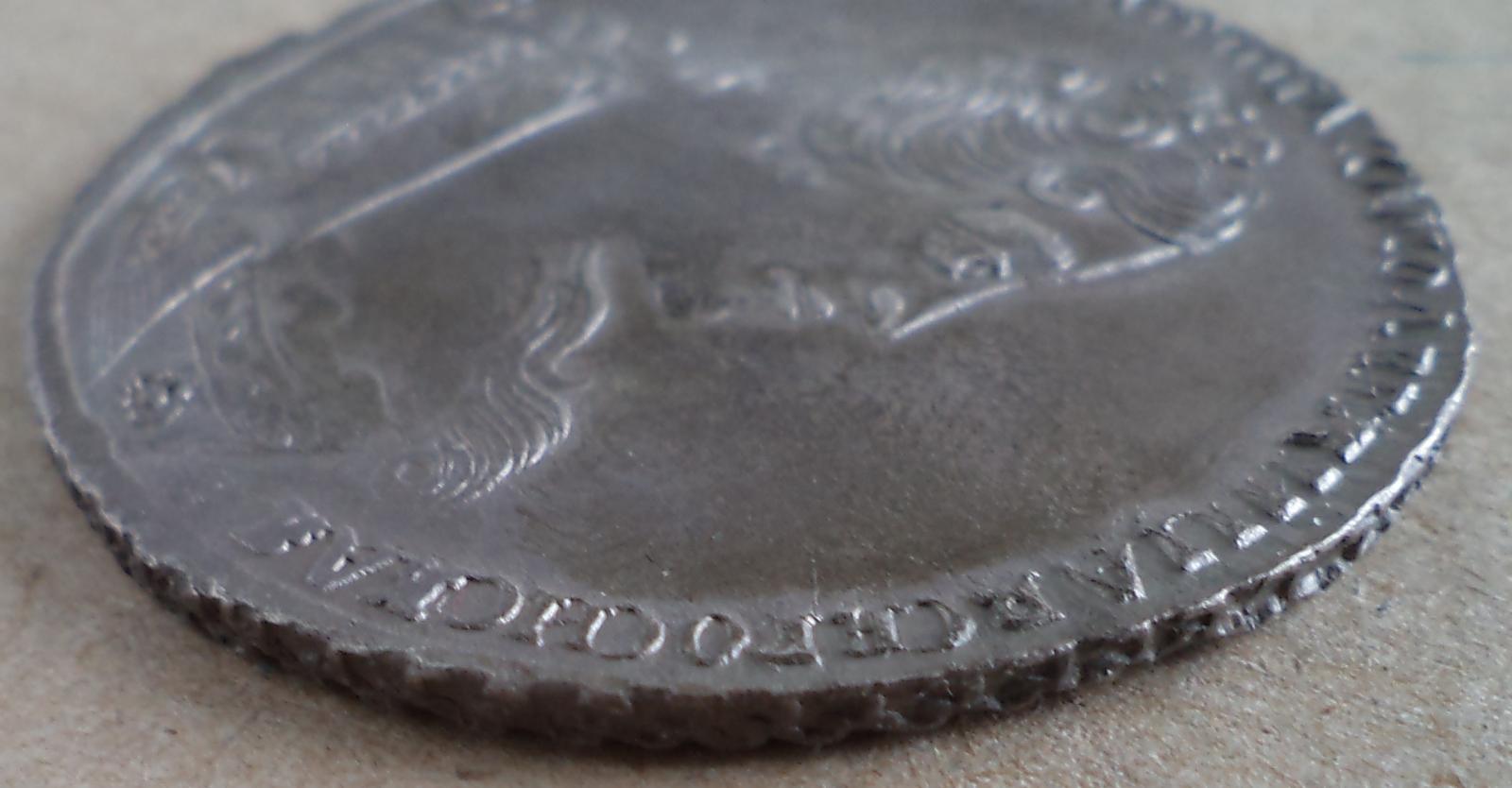чистилась в растворе тиомочевины, с потиранием пальцами и мягкой кисточкой, без механики, шлифовки, полировки и т.д. не было, на монете в том месте, где "отпечатки" есть шероховатости