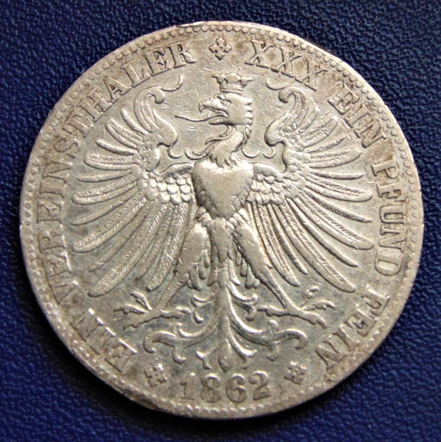 Фикс. Франкфурт, талер 1862. До 23.07.22 в 20.00 МСК