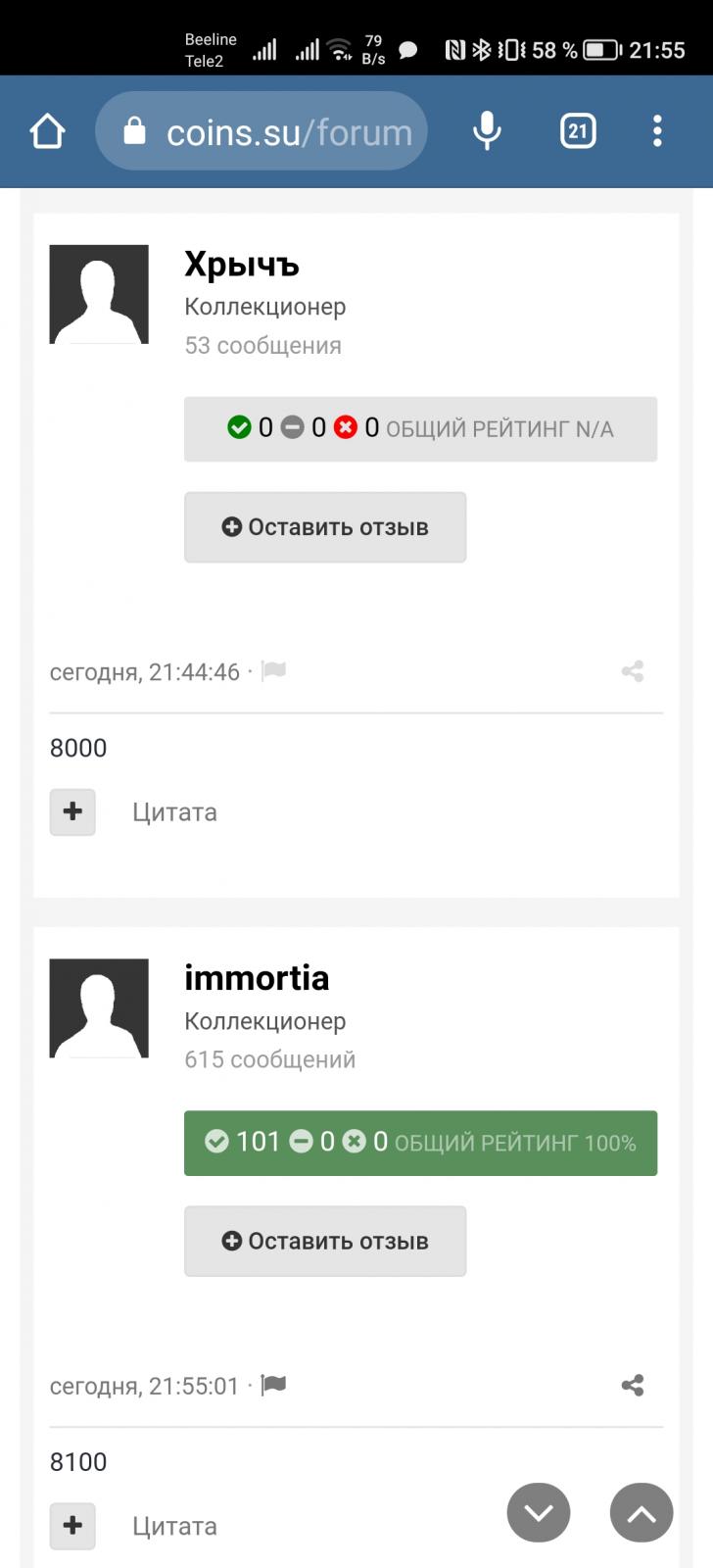 19 авг 2022, 18:59:41 Только что, Хрычъ сказал: Господа, я за антиснайпер не ошибся? Десять минут? Всё верно. Ваша ставка выиграла. Жду в личку. Поделиться сообщением Ссылка на сообщение Поделиться на другие сайты