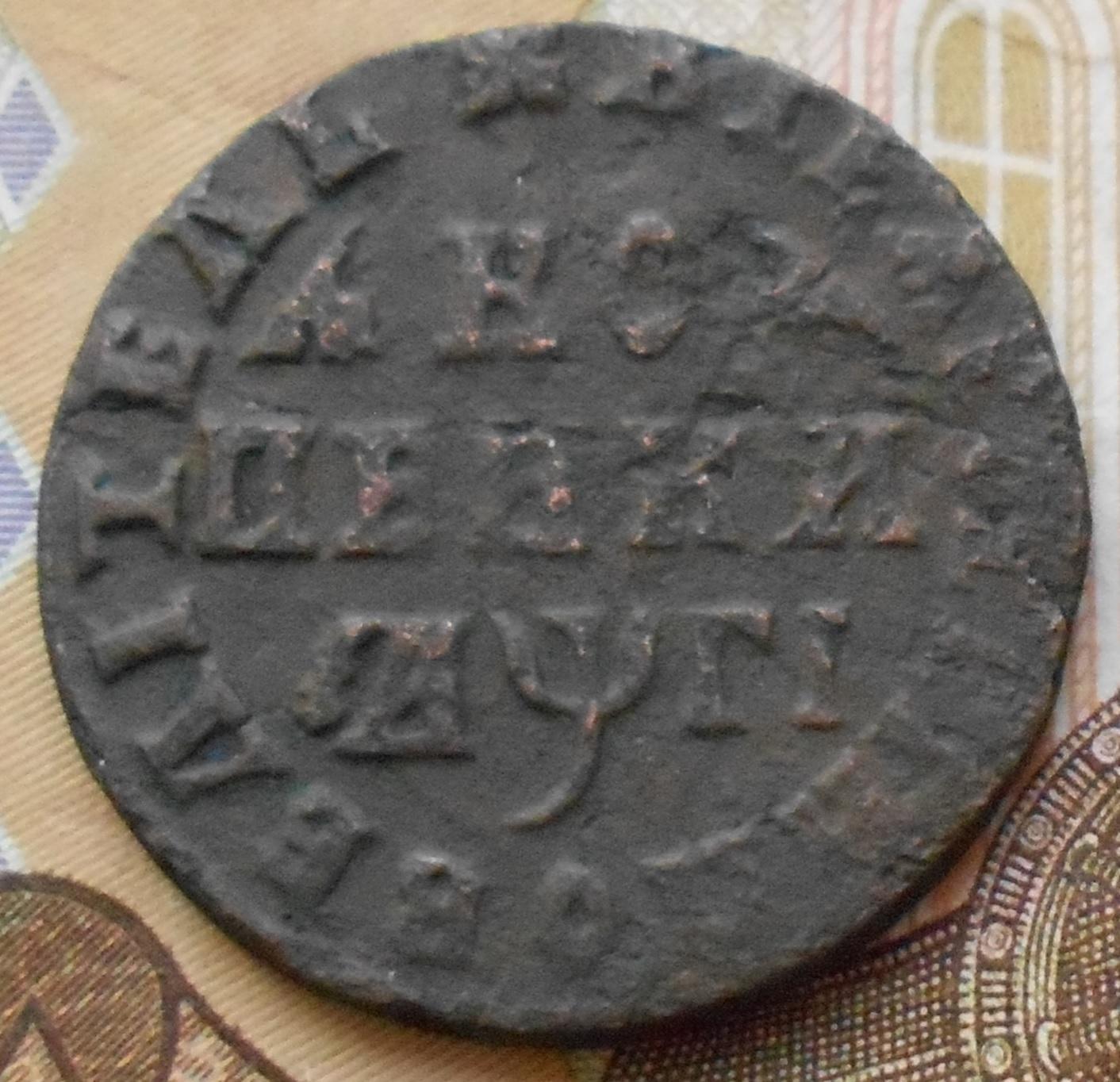 Копейка 1713 без обозначения монетного двора "Жираф". Атрибуция