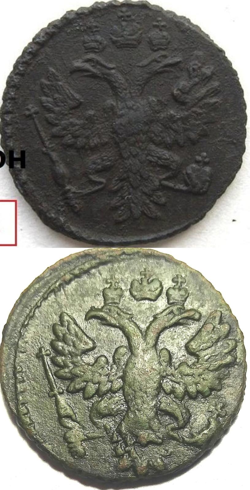Отличия есть (ремонт?) - например разная длина нижнего пера в хвосте. А по поводу креста, то в №2 он примерно одинаковый с крестом на скипетре, а здесь гораздо шире. Хотя, возможно, просто расплющен механическим воздействием.