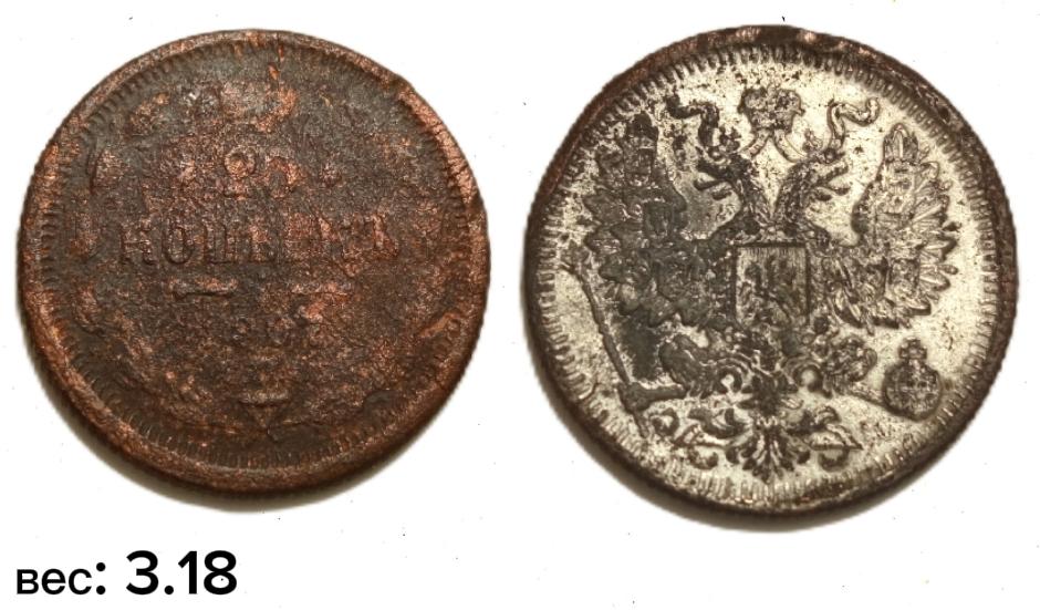 20 копеек 1907 материал скорее всего латунь с посеребреним. Чеканка