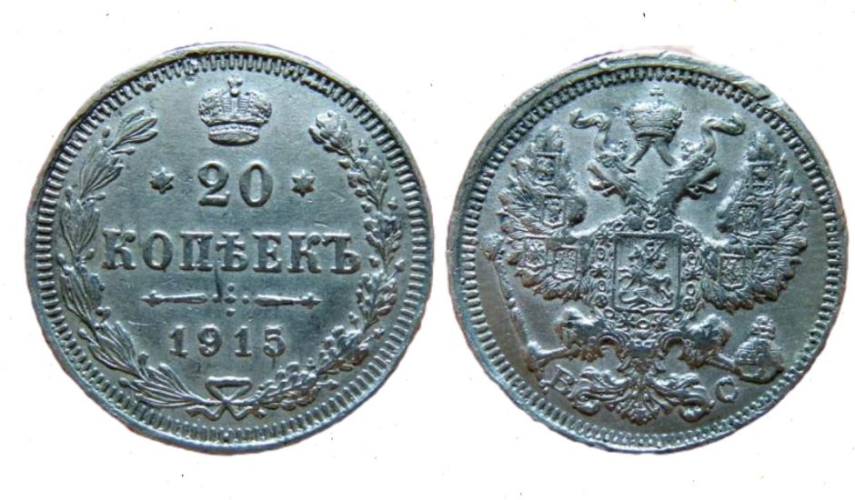 20 копеек 1915 вес 3.8 грамм. Очень качественный фальшак
