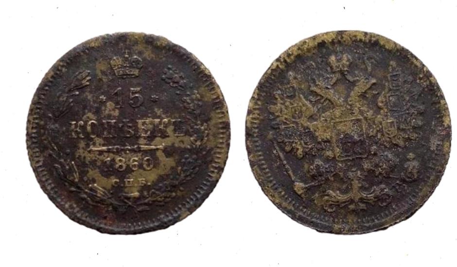 15 копеек 1860 ар неправильные инициалы минцмейстера